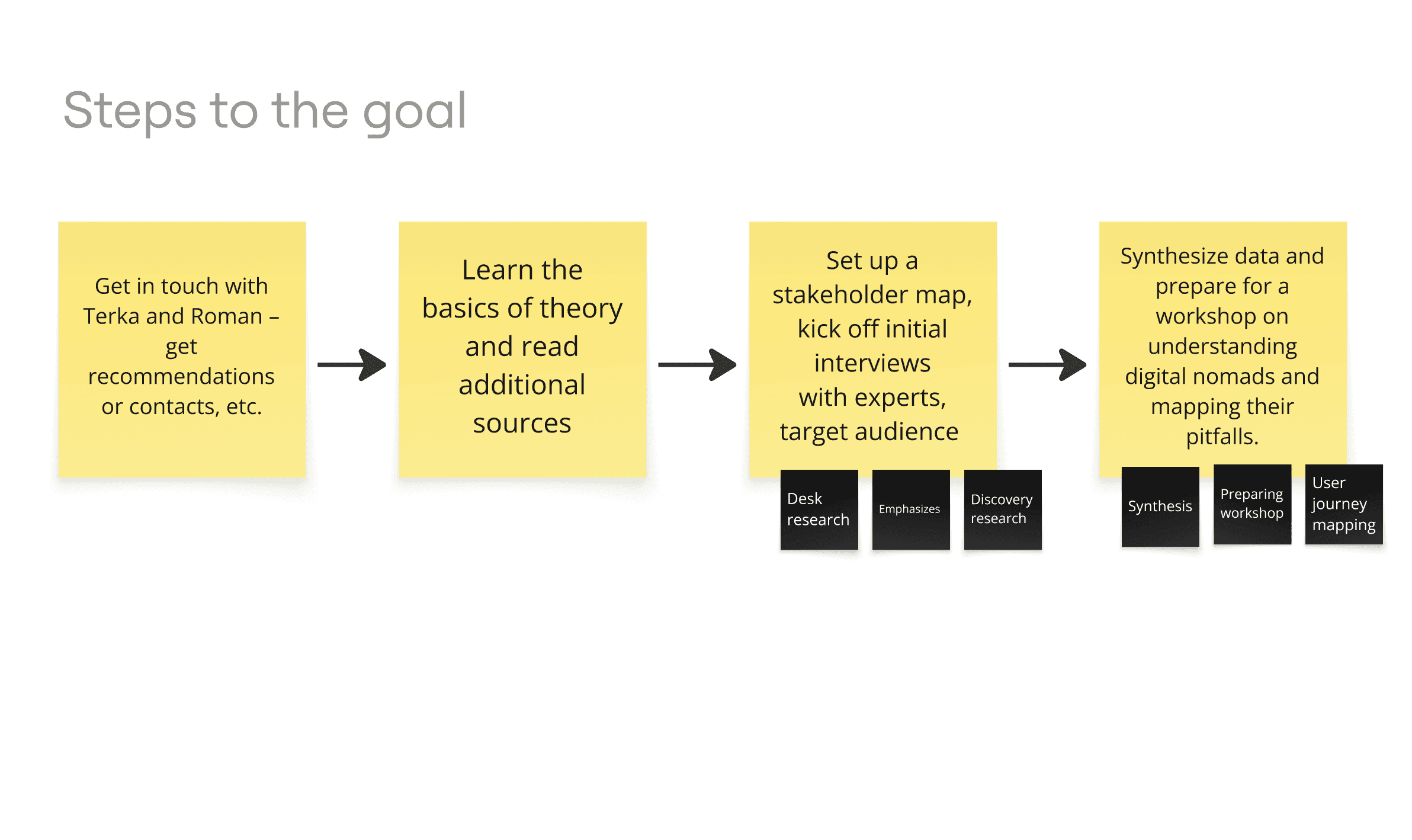 The goals changed under the influence of reality and professional consultation. After a discussion with Alexander Kasal, I understood that I could not research "suicides" directly, but had to look for the causes specifically anxieties and triggers. My goal thus became more precise: instead of a quick fix, I focused on an honest Discovery phase to map out exactly what troubles nomads.